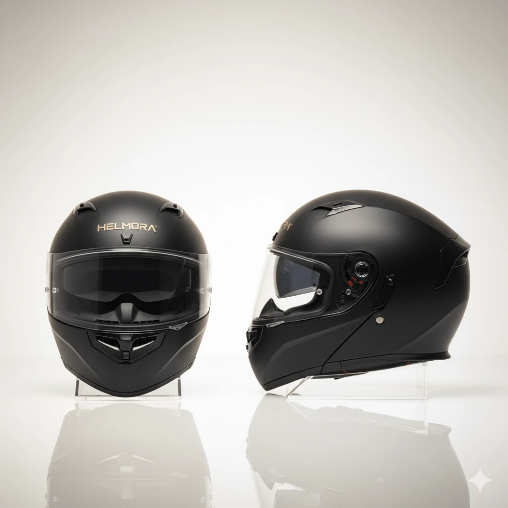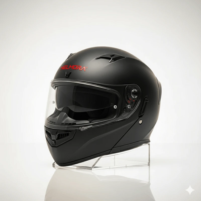 Introducing the Helmora Stealth-X, a precision-engineered full-face helmet designed for riders who demand subtle style and serious performance. With a refined matte-black stealth finish, aerodynamic contours, and a crystal-clear visor, this helmet blends attitude with advanced safety.